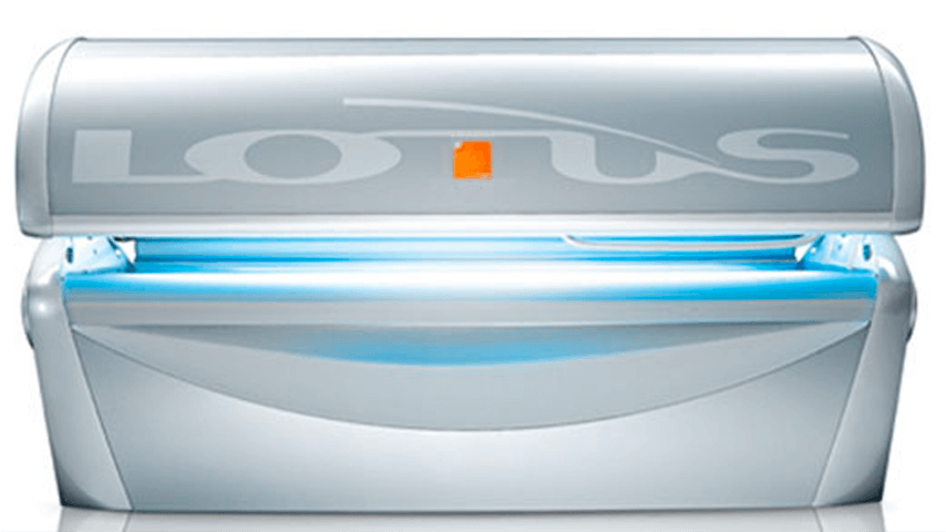 Lotus solarium fra Clubtan med blåt lys og moderne design, inspireret af naturen.